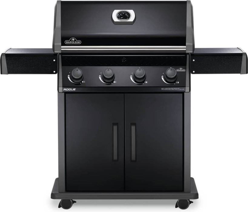 Napoleon’s Rogue® 525 Propane Gas Grill in Black is a large, premium quality grill with an affordable price. Four burners light instantly with a battery-free ignition. This grill features precise temperature control and high heat searing over cast-iron cooking grids. The stylish black exterior is highly durable and easy to clean.