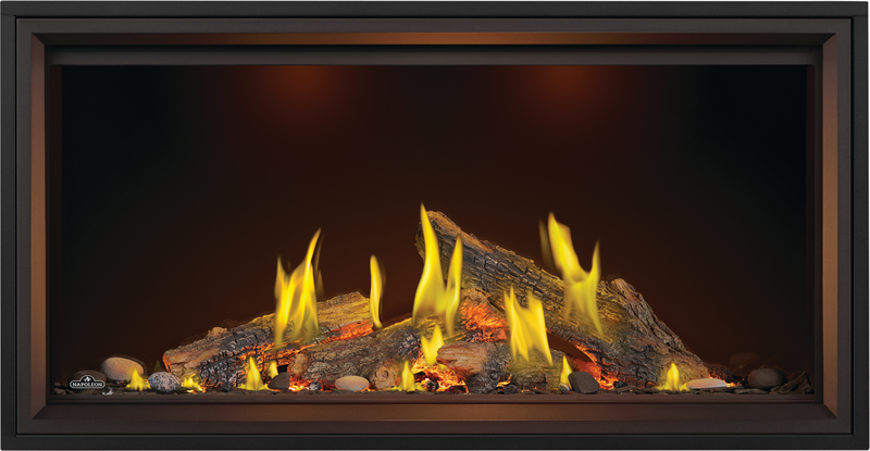The Tall Vector 50 by Napoleon is a gas fireplace that features all of the beautiful and sleek, modern design that you know and love with the Vector Series with an even greater visual impact, more efficient use of fuel, and superior heat distribution. Optional heat management through DHC & DHM means that you don't need additional blowers or power venting thus providing you with design flexibility like never before. It is the ultimate in comfort and beauty. Customize the look of this fireplace with combinations of logs, shale rocks, glass, and vermiculite, as well as other contemporary and traditional media options. See the fire and not the fireplace with the nearly frameless design, or create a work of art with the optional trim kit. Set the mood with top lights and an LED ember bed. Control everything easily with your favorite mobile device and the eFire app or included remote control. Complete your space with this luxurious fireplace to create a focal point that demands attention.